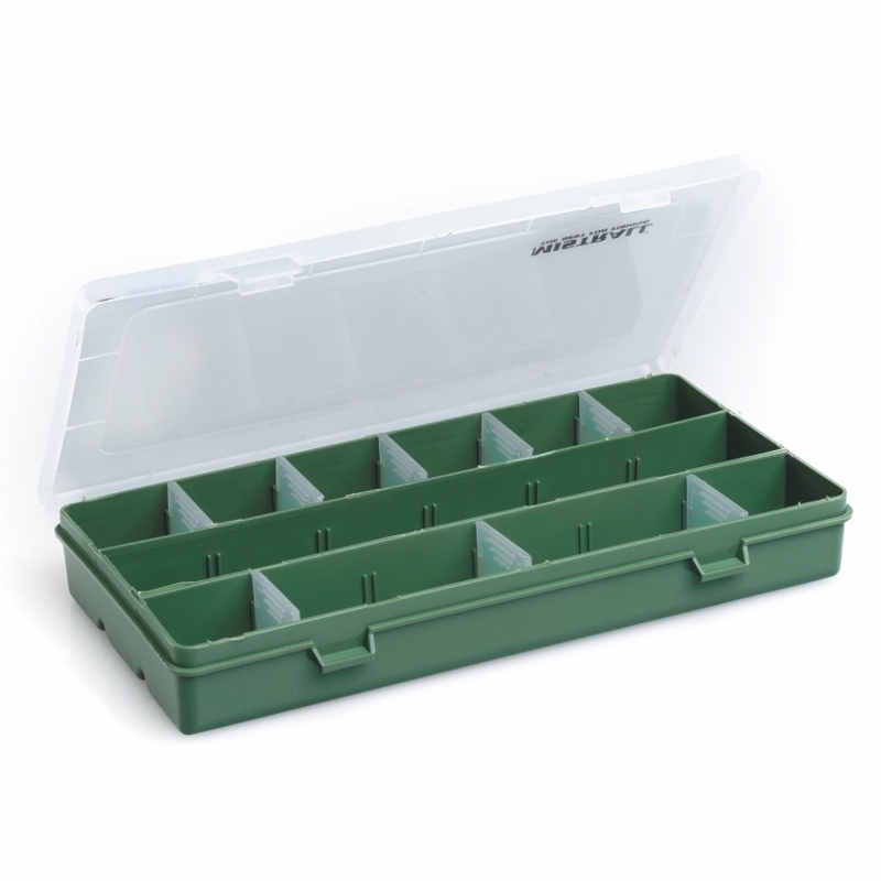 Univerzální krabička na rybářskou bižuterii. Přepážky jsou vyndavací, proto si vnitřní prostor můžete poskládat přesně tak, jak potřebujete.
