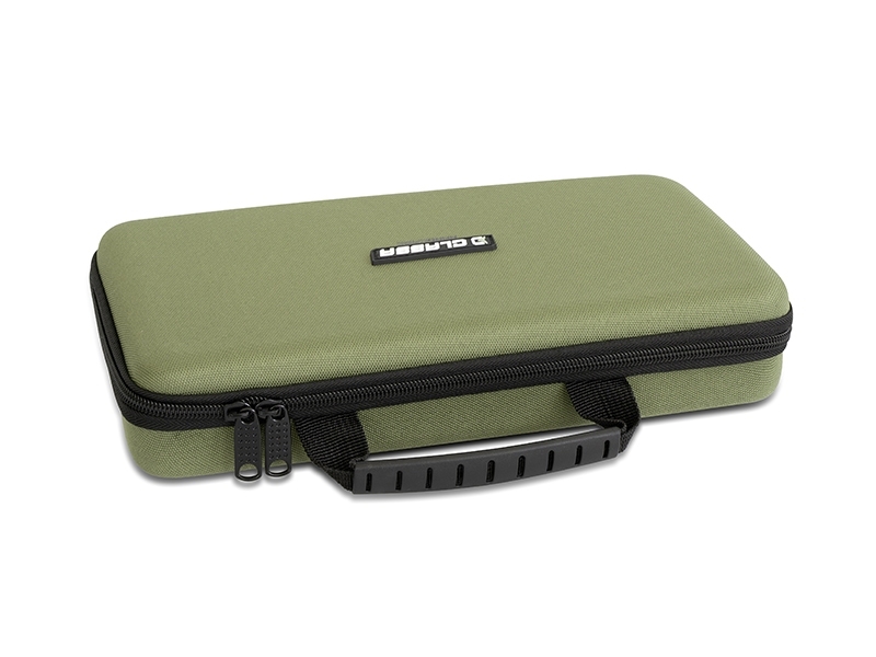 Je vyrobeno z odolného materiálu, potaženého nenápadnou tmavě zelenou tkaninou, takže taška si udržuje svůj tvar a v porovnání s běžnou látkovou taškou lépe odolává vnějším vlivům a nešetrnému zacházení. Kvalitní zip se dvěma běžci umožňuje zcela uzavření pouzdra. V přední části se nachází pogumované madlo, určené pro pohodlný přenos a vyjímání z větších tašek.