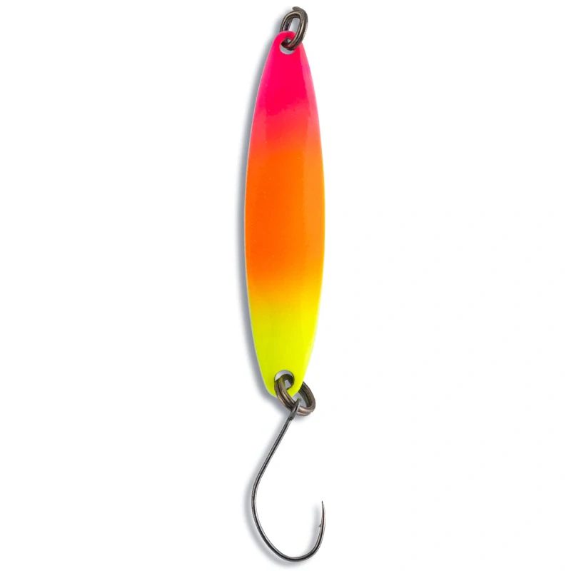 Slim Spoon začíná pracovat okamžitě po rozjetí nástrahy a nabízí stabilní, plynulou rotaci i při velmi pomalém vedení. Díky tomu je mimořádně účinná na opatrné lososovité ryby, především siveny. Ve vodě působí přirozeně a klidně, což z ní dělá spolehlivou nástrahu pro jemnou přívlač, která by neměla chybět v žádné spoon krabičce.